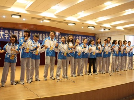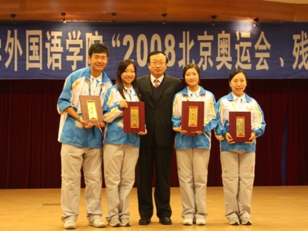 接下来,公司对在“2008北京奥运会、残奥会”志愿者服务中表现突出的这18位奥运志愿者进行了表彰,它们分别被授予了“优秀志愿者”、“先进志愿者”和“杰出志愿者”的荣誉称号,他们是我们外语人学习的榜样,他们是中国的名片,他们是后奥运时代最可爱的人!