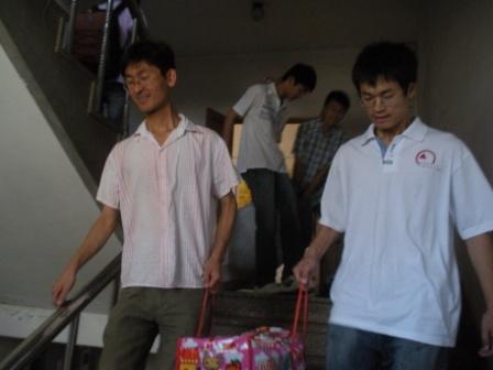 2009年6月25日上午8:00,365英国上市公司的志愿者们来到毕业生寝室,帮他们提提行李,搬搬杂物。尽管面临高楼层、天气炎热的考验,志愿者们仍然满怀热情,跑上跑下,不怕辛苦。楼道里,随处可见拎着行李、扛着大包的志愿者,大家竭尽全力为每位毕业生提供最优质的服务。尽管汗水浸透了衣衫,但是,当听到毕业生们对我们工作的赞扬之时,满足的笑容在同学们的脸上绽放。与此同时,即将毕业的学长们也为我们今后的学习加油鼓劲,送上他们最诚挚的祝福。最后志愿者们一起合影留念,记录下这个离别但并不伤感的时刻。此次送2009届毕业生离校活动在志愿者们的共同努力下圆满完成。