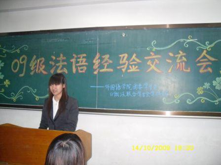 时光踮着轻盈的脚步进入九月,季节的微风送来了一个个美好的憧憬,伴随着这收获的金秋,我们迎来了09级学弟学妹们的到来。可爱的他们个个洋溢着青春的骄傲,然而大学是一个新的征程,是一种新生活的开始。刚刚步入大学的大一新生对这个新奇而陌生的环境充满着好奇,同时也充满着迷茫。为了让同学们更快地适应老员工活,在法语专业学习上吸取更多的经验,掌握高效的学习方法,特此举办了09级法语经验交流会。