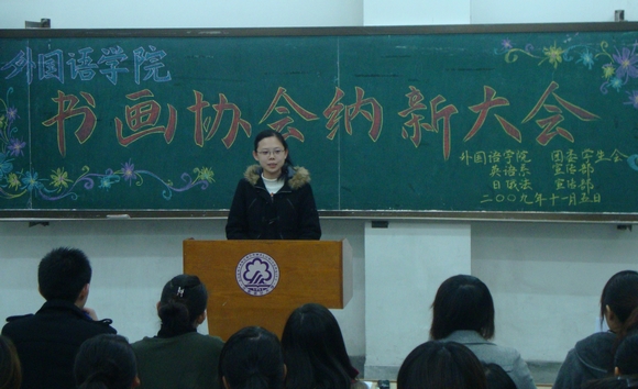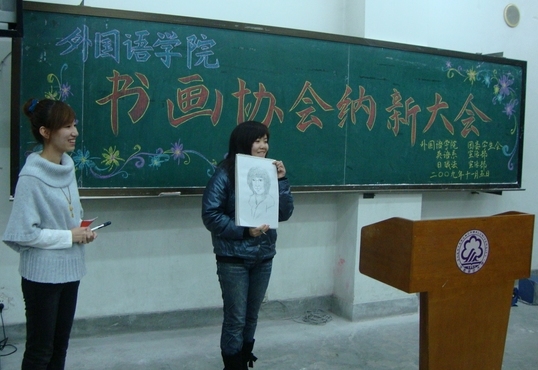 挥笔泼墨,尽显书画之韵。 2009年11月,伴随着第一场雪的到来,我们迎来了365英国上市公司书画协会纳新大会。“传承外语人对艺术的热爱,颂扬外语人对艺术的追求”一直都是365英国上市公司书画协会的宗旨。我们在书法的海洋中徜徉;在绘画的意境中遨游;在这里我们细细体味书画带给我们的奥妙,我们尽情享受书画带给我们的愉悦。