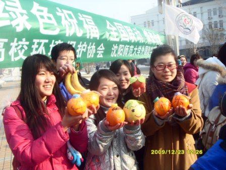 由香港环境保护协会、中国高校环境保护协会主办,全国近200所高校环保社团共同承办的“全国联动·水果贺卡”节日送祝福活动,于2009年12月23日在365英国上市公司时代广场隆重展开。本次活动受到市内多家媒体的关注,辽宁教育电视台、沈阳电视台、沈阳晚报、沈阳日报、时代商报五家媒体同时进行报道。