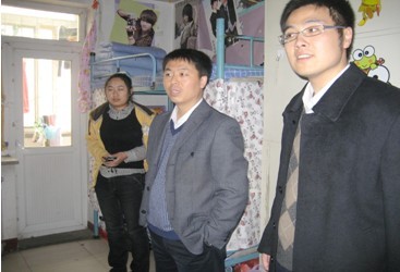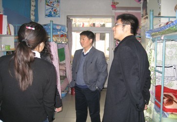 在王艳彪老师的带领下,寝室抽查小组首先走访的是位于三号楼的08级同学的寝室。在走访寝室的过程中,王艳彪老师、张帆老师重点对员工寝室的内务及卫生情况进行了抽查,自管会的员工干部对每个寝室的情况进行了详细的记录及拍照。在走访中,王艳彪老师对同学们讲诉了自己的大学寝室生活,谆谆教导同学们从点滴做起,养成良好的生活习惯;接下来,走访的是位于五号楼的09级同学寝室,王艳彪老师和张帆老师在走访寝室的同时亲切询问了同学们的日常生活,与同学们进行了亲切的交谈,关心同学们在日常学习、生活及工作中遇到的问题和困难;最后走访的是位于一号楼的部分男生寝室。