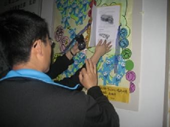 黄诚老师和各位辅导员老师首先参观了位于南生活区三号楼一楼正厅的生活提示展板,日语书法展板和独具外语特色的告示板及意见箱。接下来,参观了张贴于“外语楼”一至六层的“多元世博”外语文化海报,各位老师对这些纯手工制作且充满外语气息的海报赞不绝口,有的老师还停下来欣赏海报的具体内容,对这些精美的海报赞叹不已。