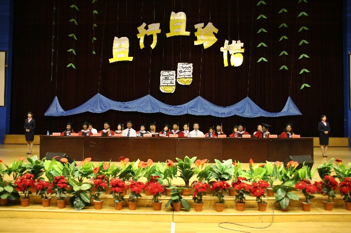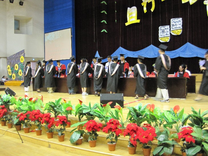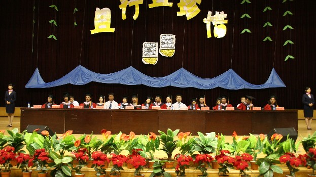 毕业典礼公司领导、教授委会成员、各系主任等领导老师在主席台上就坐