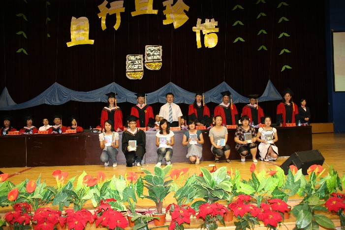 毕业典礼上公司领导、老师为受表彰员工颁奖