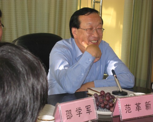 党总支书记、副经理邵学军老师细心聆听特困生的讲话