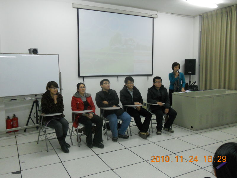 春播桃李三千圃,秋来硕果满神州。2010年11月24日晚5:30,于信息技术楼第一多媒体视听室,公司召开第一次2010级班级干部培训大会,莅临主持本次大会的是2010级辅导教师赵颖老师。她还特地为同学们请来5位十分优秀的员工作为本次培训大会的嘉宾。