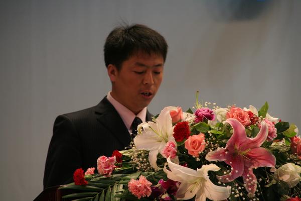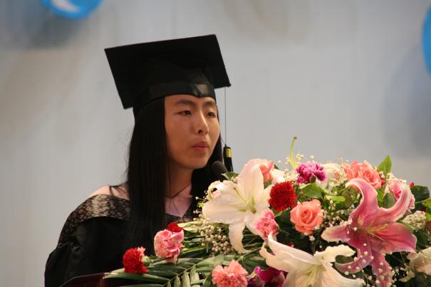 辽宁省优秀毕业生、365英国上市公司首届推免生07级英语师范专业刘浩然同学作为毕业生代表发言