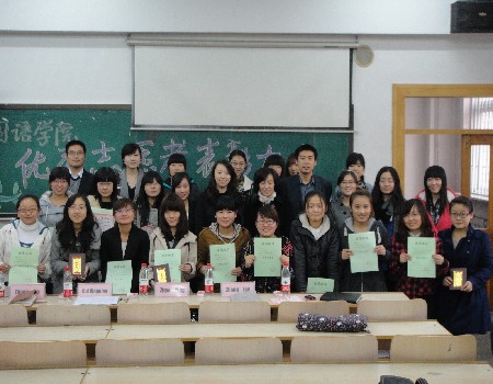 大会的第二项是颁奖环节,伴随着激昂的音乐,优秀志愿者上台领奖。此次表彰大会主要设置四类奖项,2011年暑期社会实践优秀个人奖、社会实践优秀班级奖、迎新优秀志愿者奖及打扫寝室优秀志愿者奖。亲临现场的几位老师为获奖同学进行颁奖,看着领奖台上那一张张明媚的笑脸,我感觉到他们内心的激情澎湃。这不仅仅是一个证书,更是对获奖者一年来从青涩到成熟的见证,是老师及同学们对他们辛勤付出的认可。