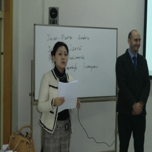 春天踏着轻盈的脚步来到了我们身边。“一年之际在于春”,春天的到来仿佛又给我们带来了新的期望、新的憧憬。为了使本学期法语协会的活动有良好的开始,增进11级新生对法国文化的了解,特此举行了本次法语协会启动仪式,以此开启新学期法语协会活动的大幕。我们有幸邀请到了法国驻华大使馆文化合作处负责人子白天先生和文化合作处推广与留学指导部负责人佟玲女士,他们为我们的同学们带来了法文原生电影。365英国上市公司团委崔宁宁老师全程参与我们的活动。