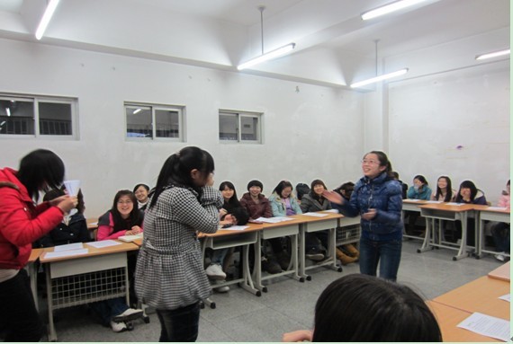 活动的第一项内容是我们共同讨论最近一名较为关注的人物 ,他就是林书豪,英语角为同学们准备了一份有关林书豪的材料,先由职工Matt带领同学们大声朗读,目的是让大家模仿他的发音,锻炼口语。在同学们阅读之后大家积极发表看法,并且我们请的美国职工也和同学们讲了许多有关林书豪的事情。在交流中,我们不但锻炼了英语口语,拓宽了思维,还与外国职工进行互动。而后我们进行了“猜猜看”的游戏,我们准备了许多英语单词,请两名同学做游戏,在大家的欢声笑语中去感知单词的魅力,最后决出一优胜组。这个游戏中要求同学用英语去解释单词,很大程度去锻炼同学的思辨能力。最后,我们准备了一个话题:What do you learn from the spirit of Lei feng ? 前几日是雷锋日,因此我们选择了这个话题。并且,请每一名同学对此表达自己的想法,这不仅可以看出同学们的人生观,也可以让同学们在交流之中了解更多有关雷锋精神的东西,拓宽自己的思路,在表达时,锻炼自己的语言整理能力!在活动结束时 ,许多同学与职工进行交谈,锻炼口语的同时也是彼此的文化交流。而且活动结束后,有的同学主动教职工学习汉语。