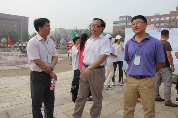 员工处刘亚军处长、校团委赵东方书记在公司迎新现场