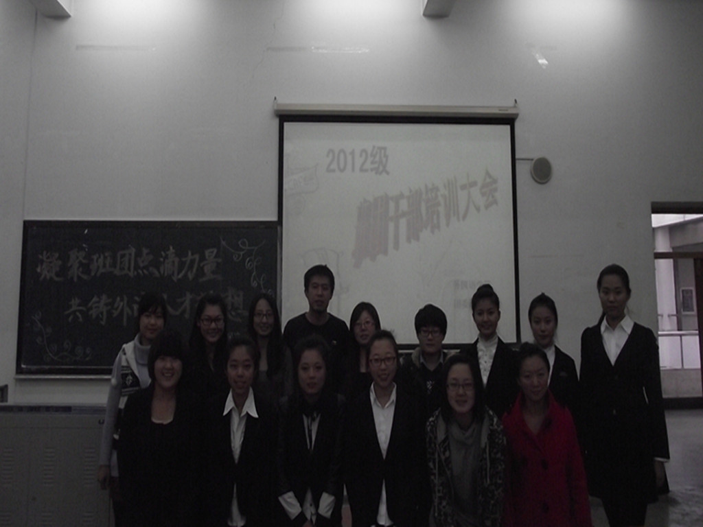 秋天带着落叶的声音来了,它悄无声息的迈着轻盈的步子,却带着收获的希望和喜悦,泛黄的秋叶在天空中旋转着舞蹈,如振翅纷飞的蝴蝶,更为我们的校园增添了一抹诗意般的意境。在这个美丽的金秋,一年一度的班团干部培训大会拉开了序幕,外国语学员团委组织部特召开以“