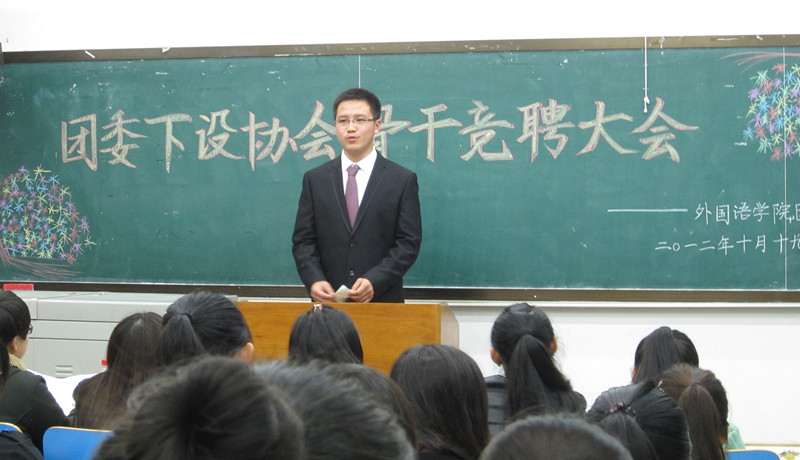 此次竞聘大会分为部长职位竞选和部员职位竞选两部分。全体竞聘者均采用演讲的方式向评委阐述自己的竞聘理由。由协会会长与员工会干部组成的评委会针对各位竞聘者的演讲,从礼仪、着装、演讲技巧、演讲内容四个方面分别进行分析和评判。