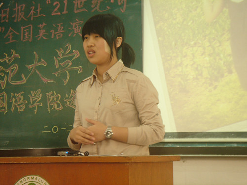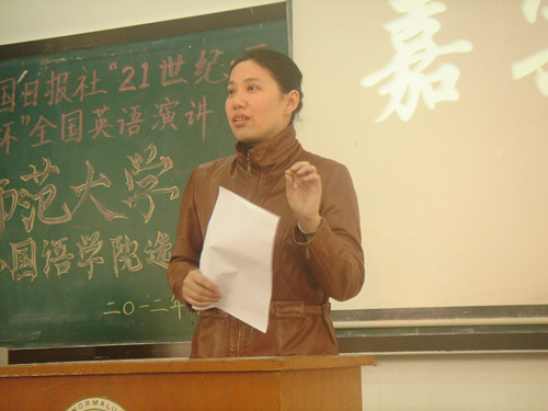 回首本次大赛,可以说是竞争激烈、精彩绝伦。从班内的积极报名,到赛前的开会指导,一番奋力拼搏后,最终有了良好的成绩。本次比赛分为命题演讲和即兴演讲两个环节。在第一个环节中,选手们按照各自赛前抽取的上场顺序先后由候场教室进入主场。每位选手有三分钟的时间对命题My View On Social Networking进行演讲,各位选手根据自己的见解,从不同方面进行陈述。