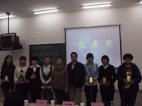 参赛选手极富感情而生动的演讲,流畅而又清晰的语音语调,紧扣故事情节的幻灯片为到场的嘉宾和评委老师呈现了一场听觉和视觉上的盛宴。选手们具有创意的表达方式、出色的口语技能、优雅的台风表现让在场的各位深深的被感染,甚至被感动。比赛过程中,选手们机智但不失严谨,幽默但不失稳重,再加上文艺部的美妙歌声,短短一个半小时的比赛,让人回味无穷。从清新活泼的童话故事到深沉厚重的哲理散文,从简单的生活感悟到深邃的人生探索,让我们既享受着英语学习的乐趣、又聆听着人生的妙音真谛,既发现了同学们存在的问题和不足,同时又发掘了新生的潜力和优势,更有利于今后的教学工作有的放矢的开展。