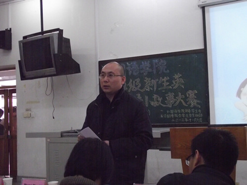 在比赛接近尾声之际,英语一系教师郭旭东老师就各位参赛选手的临场表现和参赛题材进行了精彩的点评,首先他肯定了选手们多彩的表现方式充满了新意,然后就本次小故事大赛选手们集中存在的语音问题予以纠正,极大地启发并开阔了新生们对练习口语表达的思路,使所有在场同学都受益匪浅,同时也激励同学们能在积极参与专业性比赛的过程中日积月累的提高口语水平,更上一层楼。