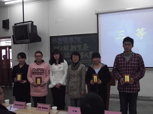 英语一系厉娜老师,陈月老师与三等奖选手合影