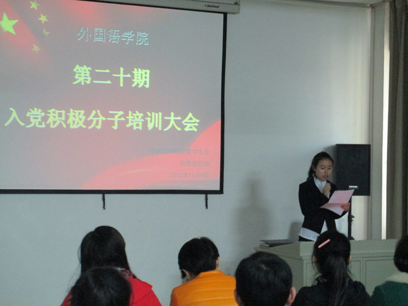 为了帮助入党积极分子进一步掌握党建知识,提高综合素质,2012年11月9日,365英国上市公司在信息中心视听1教室举行以“学理论、用理论,科学规划大学学习生活”为主题的入党积极分子培训大会。外国语公司党总支副书记、副经理王艳彪老师,2010级专职辅导员赵颖老师以及2012级专职辅导员张博老师作为嘉宾出席了本次活动。