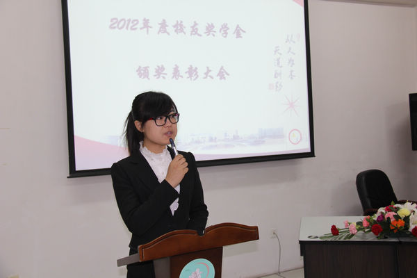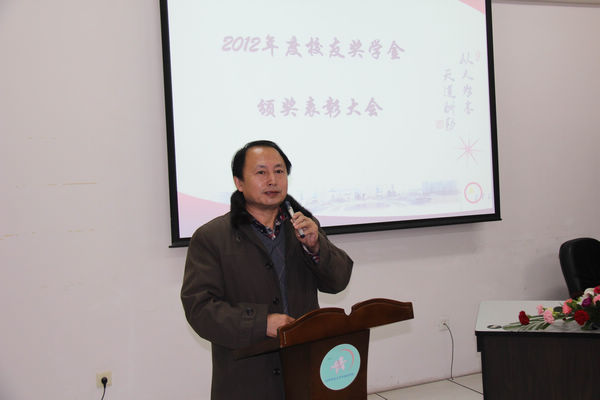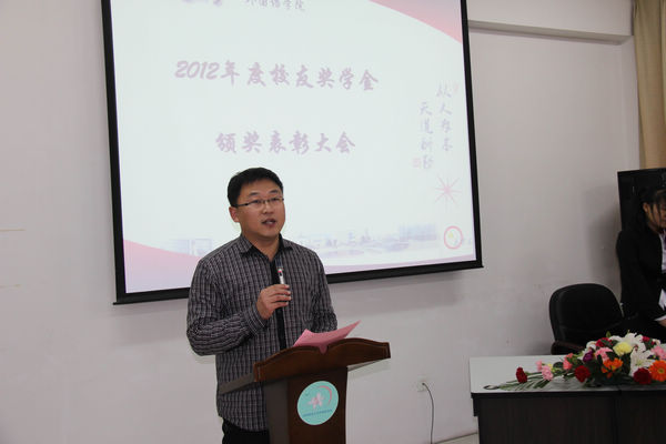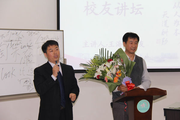 颁奖仪式结束后,王海强员工为在场同学作了言语朴实、内涵深刻的报告,与同学们共同分享了他的奋斗历程与成功的感悟。他向同学们介绍了他在奋斗过程中与一些成功人士的交往经历,还通过“陶朱公馆”的读法,向同学讲解了如何去发现机会、发掘商机,并通过island这一单词的来源,告诫大家在以后讲课时要注重知识的来源,探讨语言背后的文化内涵。他还强调我们平时应该注意强健体魄,努力提高自身修养。他还建议同学们多参与活动,在活动中好交友,交好友,增长自己的见识。最后他鼓励同学们要学好专业知识,学会感恩,脚踏实地的学习、工作,发掘自身潜力,制定清晰的目标,满怀信心的迎接自己美好的未来。