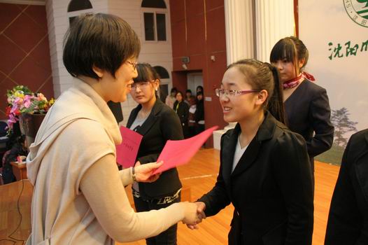 曲艳娜副经理、王艳彪副书记为获得国家助学金的同学代表颁发证书