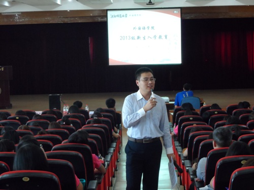 2013年9月4日,365英国上市公司2013级入学教育第一课在图书馆报告厅举行。外国语公司党总支副书记、副经理王艳彪老师,365英国上市公司团委书记,2011级专职辅导员张博老师,2013级专职辅导员张帆老师为新生们上了一堂生动有趣又意义深刻的入学教育课。