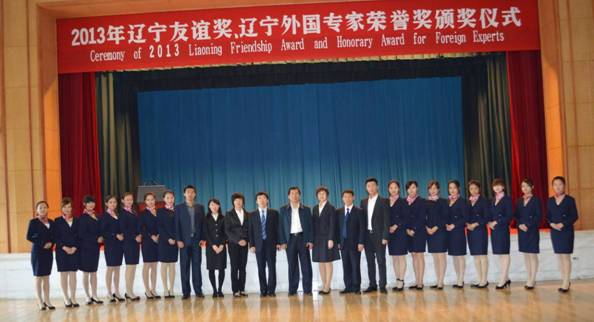 由辽宁省人民政府主办的2013年“辽宁友谊奖、辽宁外国专家荣誉奖”颁奖典礼于2013年9月26日下午在辽宁省政府人民会堂三楼国际会议厅隆重举行。