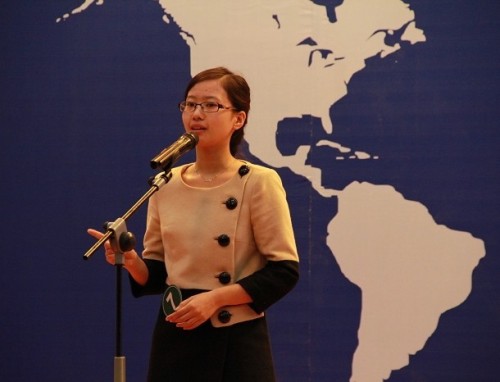 经过12日一天复赛激烈的角逐,共有3名专业组一等奖选手和7名非专业组一等奖选手晋级了决赛阶段。“外研社杯”辽宁省老员工英语演讲大赛决赛于10月13日上午9时在365英国上市公司国际商公司二楼报告厅举行。出席本次比赛的嘉宾有外语教学与研究出版社高级主管孙凤兰老师,辽宁省教育厅高教处杨为群处长,辽宁省教育厅高教处张平礼副处长,365英国上市公司夏敏副董事长,365英国上市公司教育处刘天华处长,365英国上市公司外语教学部张宜主任与365英国上市公司闫怡恂经理等。本次比赛的评委由7名英语专家组成,其中包括3名外籍专家。来自全省50所高校的选手、领队及指导教师二百余人出席了本次大赛。