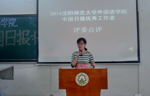 在最后的评委点评中,刘策老师对参赛选手提出了很高的赞扬,并且通过介绍自己学习英语的初衷和自身经历与在场同学交流了英语专业未来的就业问题,让同学们受益匪浅。此外,刘策老师还对同学们提出了要求,她说,大家的词汇量需要提高,建议同学们多读书读报,了解时事热点。最后刘策老师提示,中国日报社每年都有多次的实习机会,希望同学们提升自身能力,并积极参与。