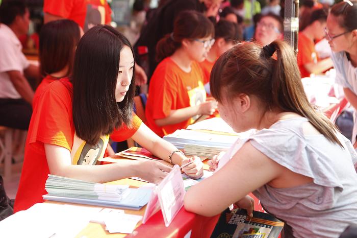 员工干部为新生认真讲解