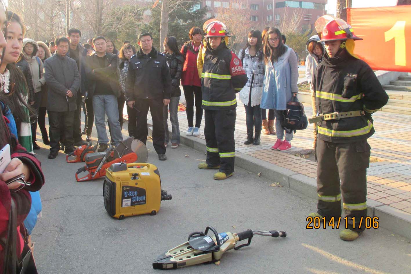 最后,老师和同学们走出图书馆,在室外进行了一场消防演习。演习包括公用消防设备的使用及相关注意事项、火灾事故现场的处理、常用防护设备及工具的有效利用等诸多方面。此次消防演练增强了同学们在紧急情况下的应变能力及自我防护能力,对今后应对突发事件的能力有一定程度上的提高。