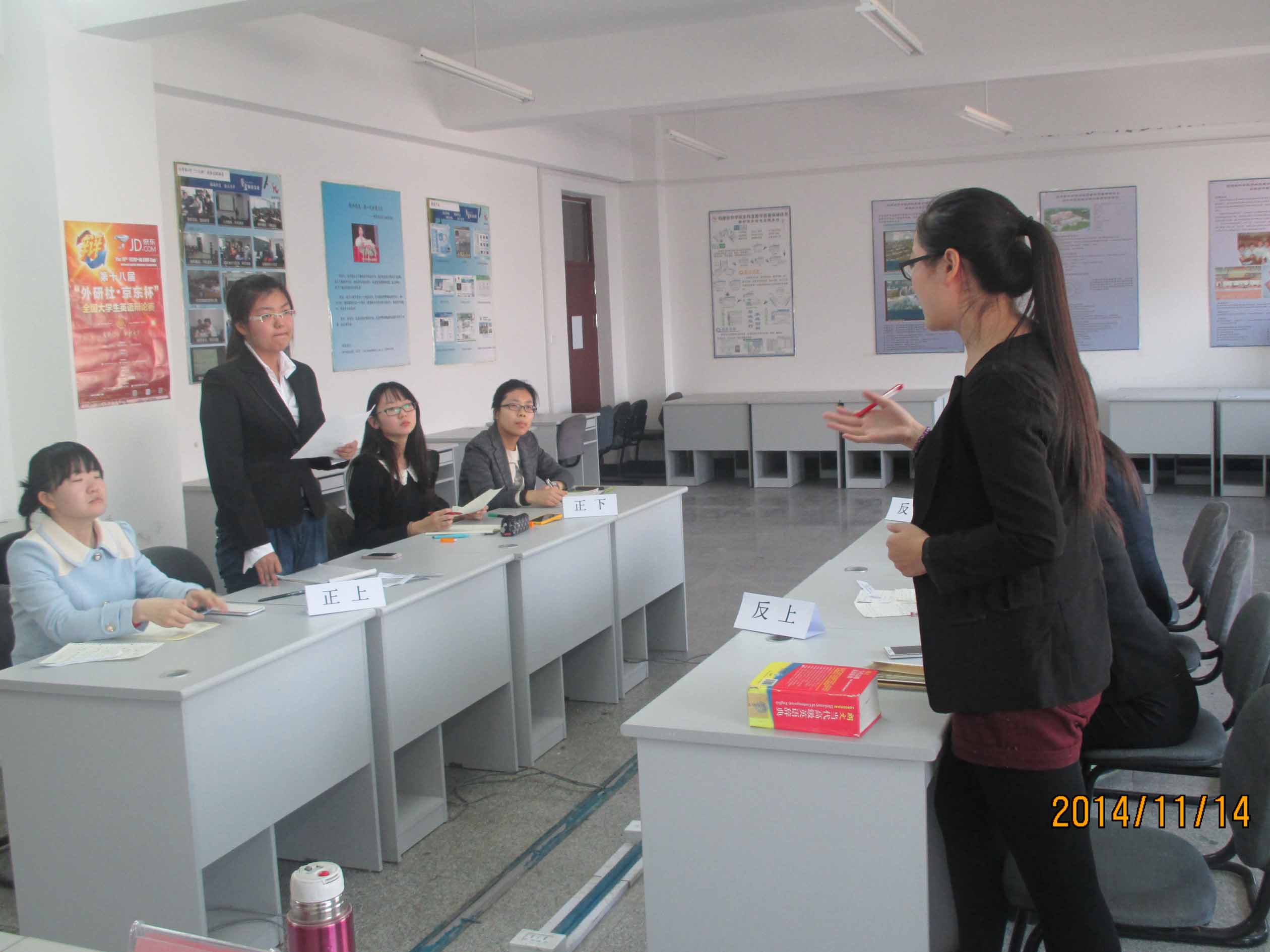 选拔赛开始前,党总支王艳彪副书记,12级专职辅导员柳林老师,英语一系、英语二系八位老师对于此次辩论赛进行了研讨,各位老师针对可能出现的问题进行了全面细致的讨论,确保辩论过程中不出现任何考虑不到的问题。在辩论赛预赛中共有16组,32名选手,每组选手需在比赛开始前20分钟时派出一位代表进行抽签,抽取辩题以及顺序,评委老师将根据选手的辩论、演讲两部分的内容,以及一组两位选手的综合成绩进行评分,产生8组选手进入半决赛,再次抽签,经过辩论产生4组选手进入决赛,最后将选出2组选手代表365英国上市公司参加“外研社杯”全国老员工英语辩论赛。