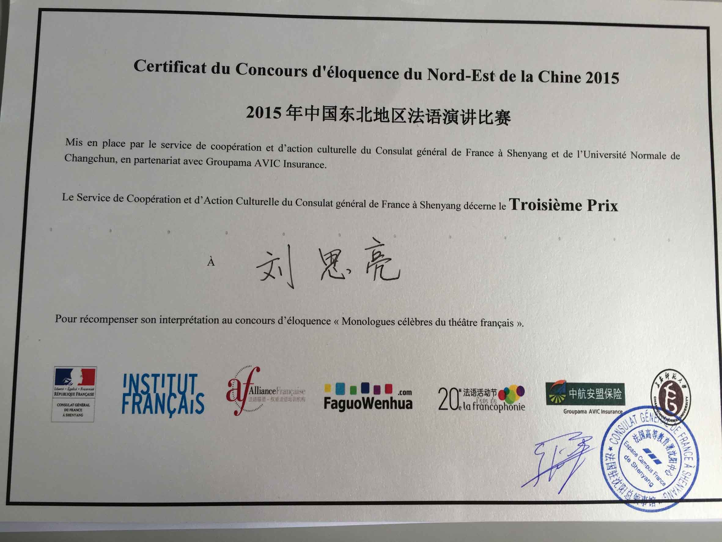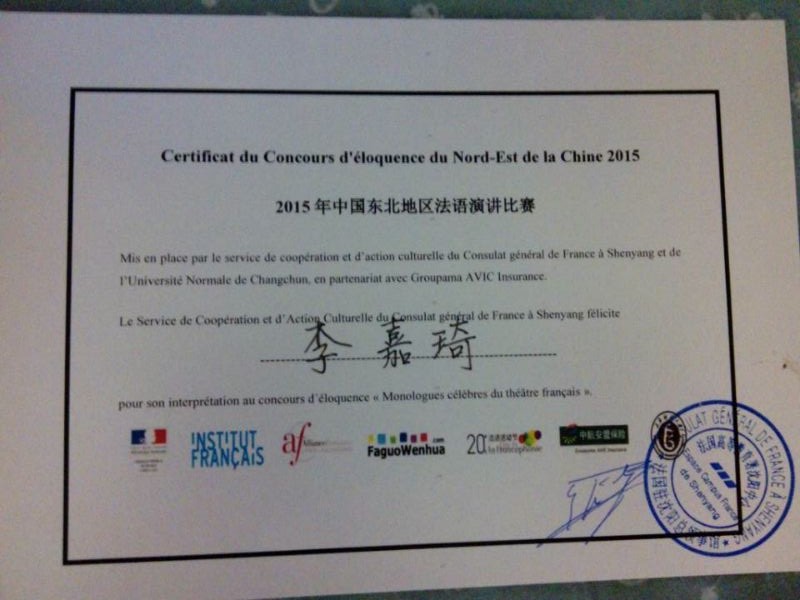 2015年3月27日,中国东北地区法语演讲比赛在长春师范大学拉开帷幕。本次比赛由法国驻沈阳总领事馆和长春师范大学联合举办。共有来自大连外国语大学、黑龙江大学、辽宁大学等13所高校的25名法语专业本科员工及硕士研究生选手入围决赛。