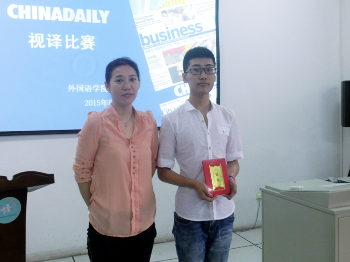 最后,张辉老师对这次比赛进行了英文点评。她从细节和文章结构上点评了这次比赛。老师同时指出,在翻译的过程中不但要注重英文的重点单词,还要注意避免措辞的重复;在注意汉语与英文的说话习俗的同时,语句结构要尽量平行,翻译的结果要跟原文结构相对应。当下文出现同样的词时,要注意同义替换等。