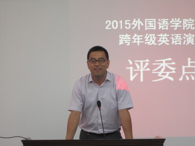 紧张激烈的比赛结束后,张成羽教授为本次大赛做总结发言。老师用自己独特的观点评价了此次跨年级演讲比赛的选手们。他首先肯定了选手的积极努力和充分的前期准备。张老师在发言中指出:“演讲比赛不是记忆,要进行临时思维的转换。”这就要求我们平时的学习过程中,不仅仅要注重书本知识,更要关注新闻,包括中国新闻和世界新闻,以此来拓宽我们的视角。