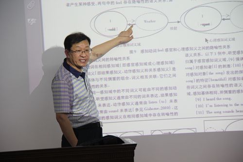 三、最后,林教授重点讲述了学术论文中的研究方法,主要有:定性与定量研究,历时与共时研究,归纳与演绎研究,语料库方法,语篇分析方法,内省法等等。期间,林教授还介绍了项目申报的方法和如何认真听取同行专家的意见和建议。