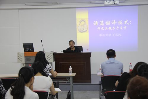 王东风教授做了题为《语篇翻译模式:译之关键在于连贯》的学术报告