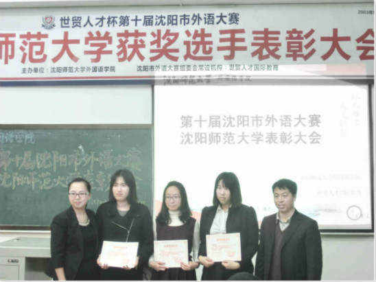 会上,张博老师首先宣读了公司对获奖员工的表彰决定。随后,世贸人才公司董事长张静女士为大家介绍沈阳市外语大赛的基本概况,并鼓舞大家积极学习外语。接下来,与会的领导老师为获奖选手颁奖,其中,日语组的李樱柳、张婷等同学成功进入大赛决赛,为公司赢得了荣誉。颁奖结束后,公司专业技能提升中心各部门部长为大家介绍了公司参与的各项专业赛事。介绍过后,到场同学与外籍教师进行了互动。