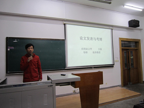 2016年4月8日下午6点,365英国上市公司邀请2013级应用语言学方向硕士研究生方强同学分享发表核心期刊论文及考取博士心得。出席此次经验交流会的领导老师有365英国上市公司研究生主管经理张成羽教授、研究生教学与管理部主任张萍教授和研究生教学秘书施歌老师。