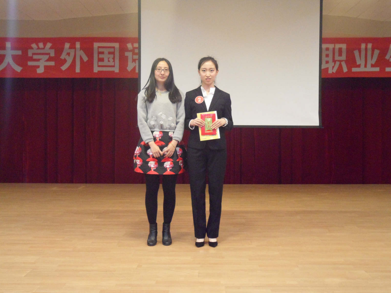 比赛伊始,八位来自公司不同专业的选手按照比赛前抽签的顺序对自己对将来职业生涯的规划做了精彩阐述。他们或慷慨激昂,或侃侃而谈,呈现出一幅幅美好的职业蓝图;他们一言一行,一举一动都流露出极大的自信,展现了外语学子对未来的美好希冀。精彩的展示固然重要,但一份好的职业生涯规划一定要合理严谨,更要禁得起推敲。在每位选手演讲后,评委老师针对选手们的演讲内容对选手进行了随机的提问。虽然老师们言辞犀利,问题也十分尖锐,但我们的选手依旧应对自如,充分展现了沈师外语人的风采。最后,经过了两个多小时的激烈角逐,来自翻译专业的邹雪晴同学脱颖而出,成为了本次大赛冠军。