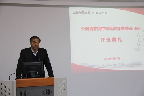 东北师范大学博士生导师杨忠教授代表导师团队进行了讲话。杨忠教授对365英国上市公司能够在东北地区各高校外语院系中率先开展“中青年教师发展研习班”给予了高度评价与肯定,并表示此次研习班对中青年教师的个人学术成长和职业发展必将起到积极的推动作用。