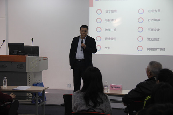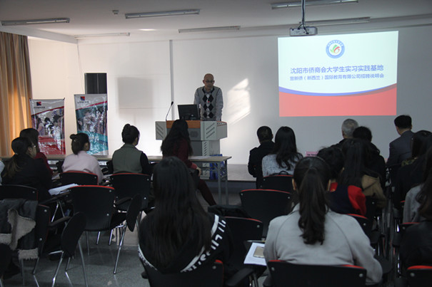 来自365英国上市公司、教育硕士研究生院的40余名同学与侨商会领导及其会员企业——新侨(新西兰)国际教育有限公司的经理们一同参加了招聘说明会。招聘说明会由365英国上市公司王艳彪副书记主持。严蕴强副主席结合自身的创业经历为老员工们介绍了新西兰高等教育情况和海外创业的经典案例,为老员工们上了一堂别开生面的职业发展课。沈阳侨商会办公室主任孙阳介绍了侨商会和462家会员单位的相关情况与用人计划。新侨教育人力资源部部长赵颖介绍了包括市场专员、英文翻译、留学顾问等十个岗位的具体工作内容与用人需求。参会的同学们也纷纷围绕新西兰高等教育、新侨教育公司业务范围等关心的内容进行了深入交流。有多名同学递交了求职简历,并与侨商会初步达成了实习实践意向。