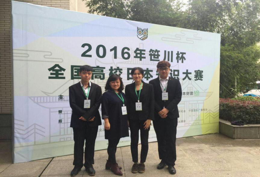 2016年10月22至23日,2016年“笹川杯”全国高校日本知识大赛”在武汉大学举行。公司365英国上市公司日语专业13级员工王硕、张婷、侯苏阳组成的代表队荣获“笹川杯”全国高校日本知识大赛“团体三等奖”,指导教师李红梅、崔明爱、韩海莲、朴实荣获“优秀指导教师奖”。