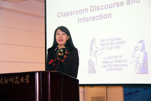 课堂互动一直是近十年来语言学及语言教学研究的热点。刘永兵教授针对当前中学英语新课标的要求,结合自身对中学英语课堂的调查和研究先以提问题的方式引出“罐子理论”---给员工一碗水,教师要有一桶水。他认为,作为老师不能简简单单教知识,而要帮助员工去建构知识体系。其次,刘永兵教授讲解了课堂会话的三个功能。第一:课堂话语能帮助学习者理解不同语义下的话语;第二:课堂话语具有意义协商的功能;第三:课堂话语具有课堂管理与行为规约语用特征。针对每一个功能,刘永兵教授都以生动形象的例子让复杂的理论变得清晰易懂。再次,刘永兵教授用课堂中的实例介绍了交际课堂中最基本的三话轮理论,切分标识语的使用,以及教师应给员工的积极反馈与消极反馈方面的建议。最后,刘永兵教授与参加讲座的师生进行互动。