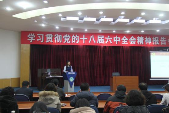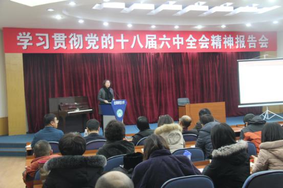 秦晓波教授从四个全面整体战略布局的需要、全面从严治党的伟大征程和建设中国特色社会主义的可靠保障等三个方面宣讲了党的十八届六中全会的重要意义。