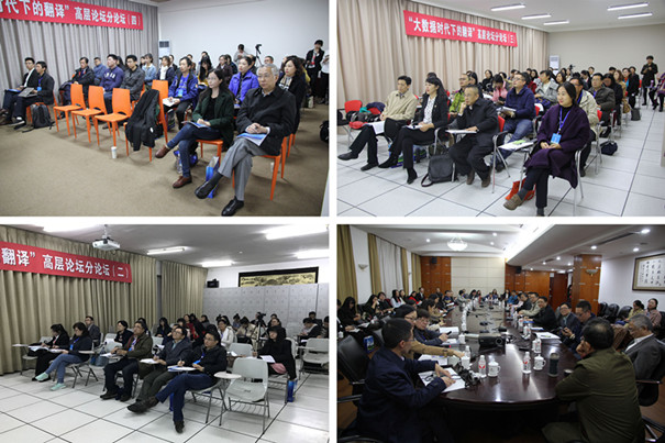 本次论坛以“大数据时代下的翻译”为主题,在两天会议期间,每天上午阶段为主会场大会发言,下午阶段为分会场平行分论坛,晚上在代表驻地还安排了“青年博士沙龙”。在大会发言中,谢天振、柴明颎、郑培凯、鄢秀、周中天、穆雷、王东风、廖七一、闫怡恂、吴赟等专家结合各自研究成果以《回到严复:再释“信达雅”——对中国翻译思想史的一个反思》、《公共服务领域国家标准研制对专业翻译教学的启示》等为题目做了9场内容详实、创新性突出的学术报告。大会发言由廖七一、闫怡恂、任东升、吕世生、王东风、史国强先后主持。在平行分论坛阶段,60余位参会学者分别围绕翻译与跨学科研究、“一带一路”背景下的外译研究、翻译与技术、多模态口笔译教学等议题进行发言,学者们在交流中碰撞着思想的火花。