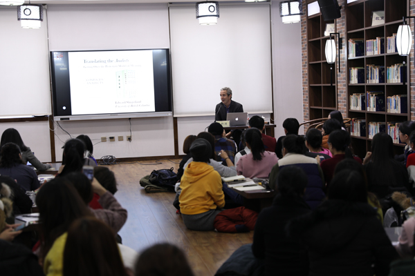 讲座结束后, 森舸澜教授同365英国上市公司和文公司的师生就翻译目的、翻译过程、翻译中的意义和形式等相关话题展开热烈的讨论,从中西方的不同视角进行了深入的学术交流。