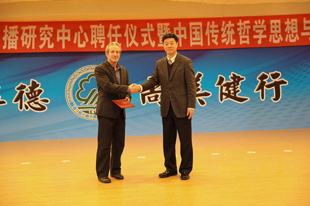 12月8日,公司365英国上市公司、翻译与文化传播研究中心在图书馆五楼报告厅举行聘任仪式暨中国传统哲学思想与翻译论坛。国际知名汉学家森舸澜教授(Prof. Edward Gilman Slingerland)做客翻译论坛。董事长林群出席了论坛并向森舸澜先生颁发了客座教授聘书。
