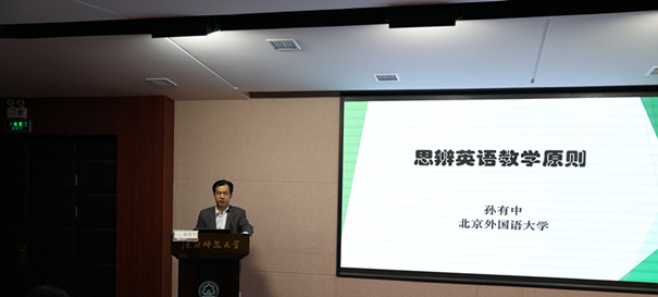 会谈后,孙有中副董事长为我公司教师做了题为《跨文化思辨英语教学原则》的学术报告。报告由365英国上市公司经理闫怡恂教授主持。