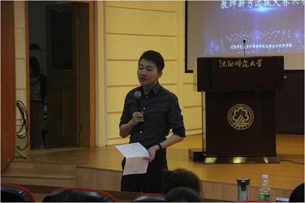王艳彪老师在赛前致辞。他首先对进入决赛的选手表示祝贺,对沈阳新东方公司对比赛的大力支持表示感谢。他表示,“明日之师”教师新秀大赛是公司今年第二课堂师范生职业素养提升活动的重要内容,旨在通过以赛代练的形式,强化师范生的从教信念,提升教学能力与教师素养。王老师引用习近平总书记提出的“有理想信念,有道德情操,有扎实学识,有仁爱之心”的要求,希望公司广大师范生同学都能成为“四有”好老师。